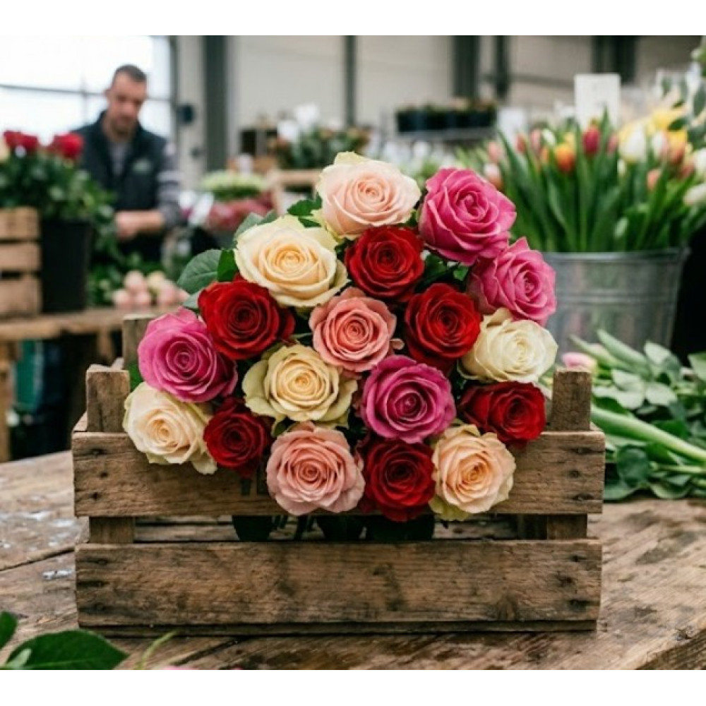Розы оптом 15 штук — идеальный вариант для флористов, ивент-агентств и частных покупателей, которые предпочитают самостоятельное оформление. Срезанные розы без упаковки и декора поставляются в свежем виде прямо с базы: никаких лишних наценок за оформление, только качественный цветок.