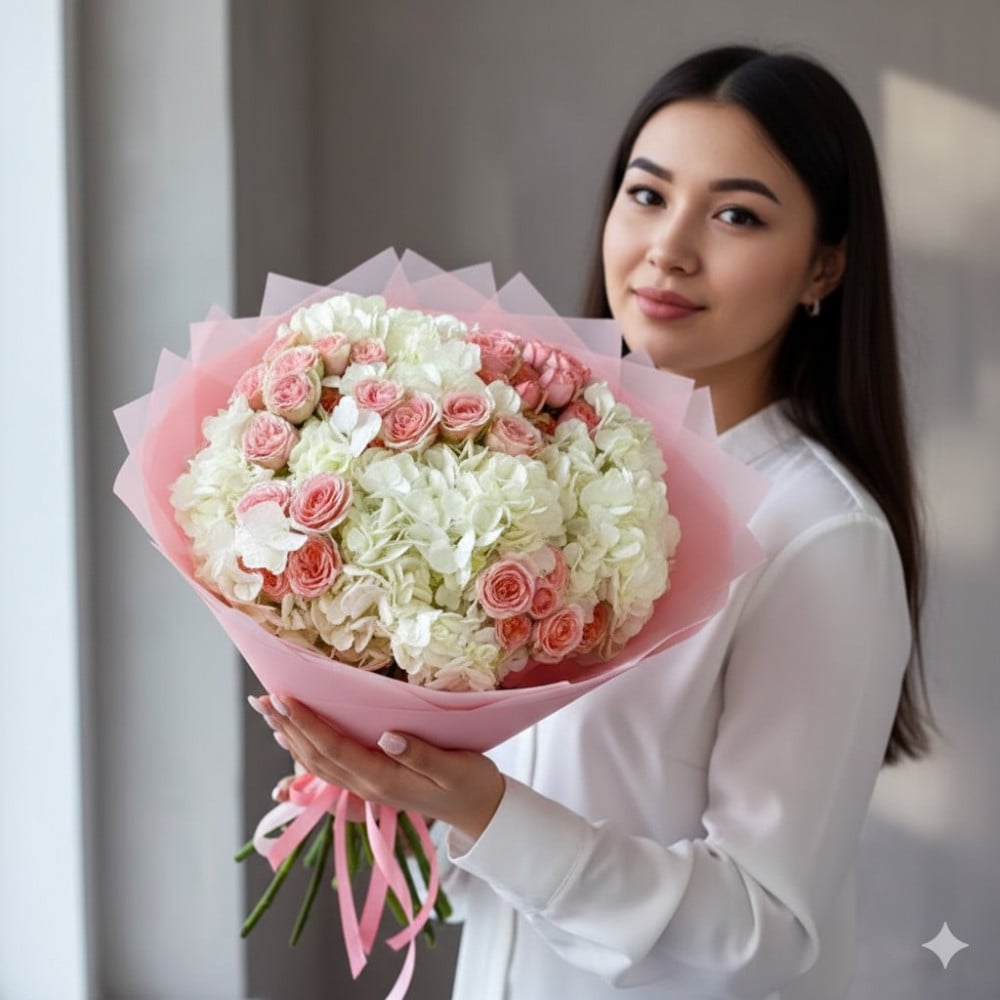 Дорогие клиенты, хотим Вам сообщить, что каждая наша композиция индивидуальна, и каждый наш флорист вкладывают душу в собранные им композиции, и букета в точь в точь не бывает. в зависимости от сезона и наличия цвета букет может отличаться до 30%